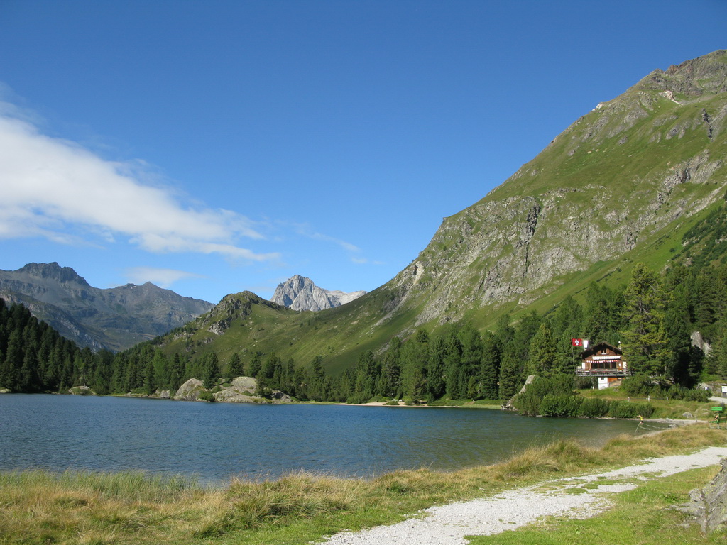 Z parkoviska po asfaltovej cestičke smer Lei Cavloc k asi najkrajšiemu jazeru celého Engadinu. Oplatilo by sa zobrať bajk a zamknúť si ho za jazerom pri miestnom hospodárstve (prasiatka, somáriky a tak). Odtiaľto už jedine peši.