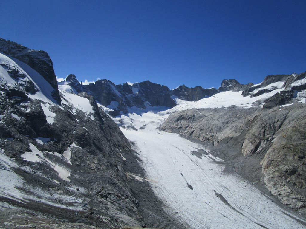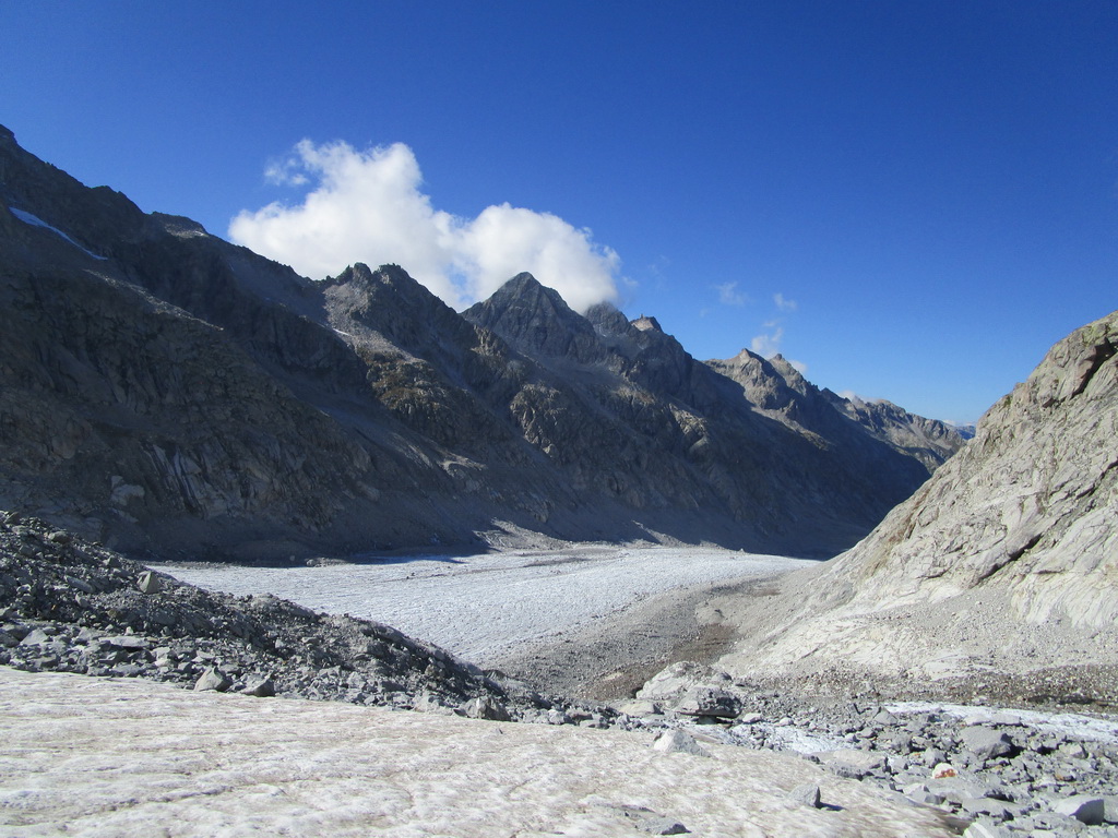Zliezanie nakoniec dopadne dobre, úprimne sa teším keď som naspäť na ľadovci a potom už po mojej stope naspäť. Odbehnem si ešte kúsok aby som si obzrel ľadovec a valím naspäť na chatu. Pitný režim, slniečko na terase a zrýchlený presun naspäť.