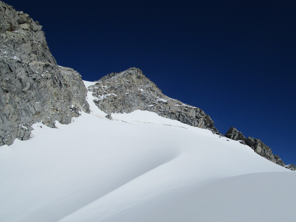 Hypnotizujem vrchol. Už to nie je ďaleko ale ani úplne blízko. Čerstvý sneh je namrznutý a v strmom teréne by to už s mojou výzbrojou nebolo ono. Rozhodujem sa, že tu prídem v zime s lyžami. Vrchol počká a budem sa naňho o to viac tešiť...
