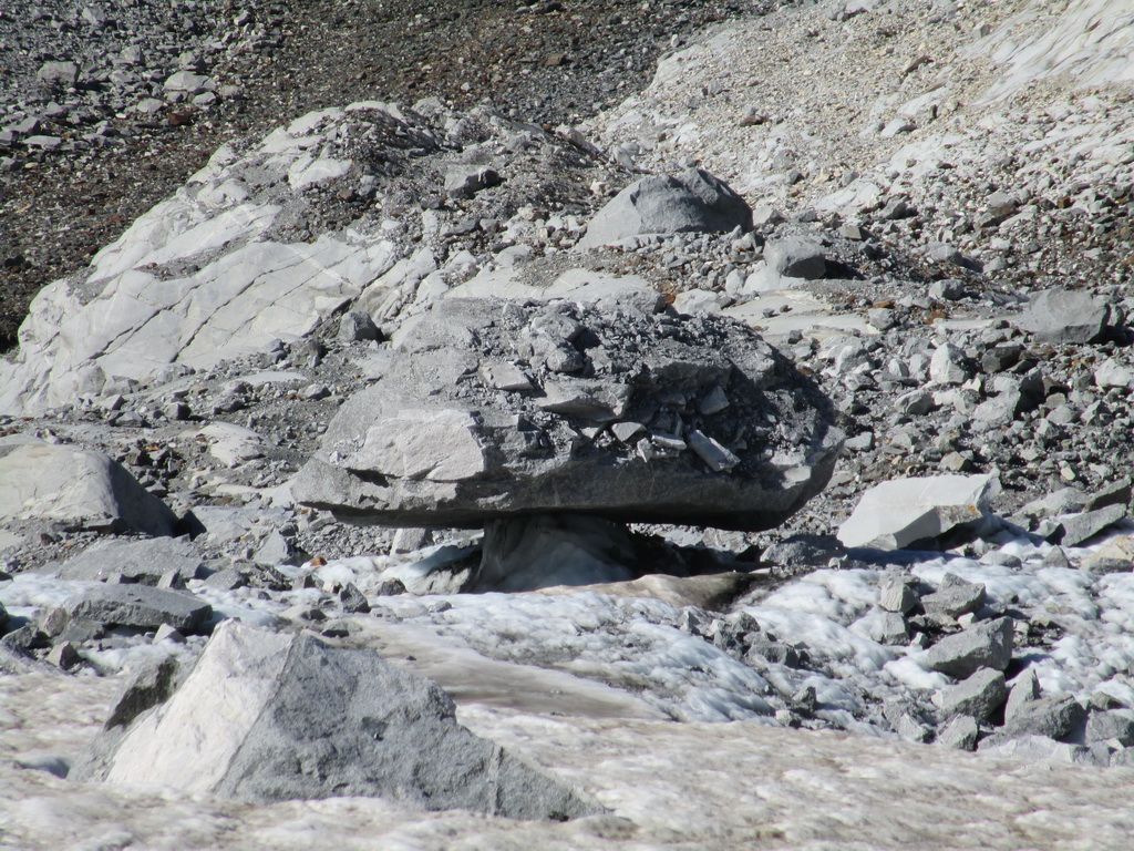 Chatár Beat spomínal, že tu sú od ľadovca vyhladené skalné platne posypané malými kamienkami. Pri postupe s ľadovcovou obuvou problém, pri pobehu v teniskách pohoda.