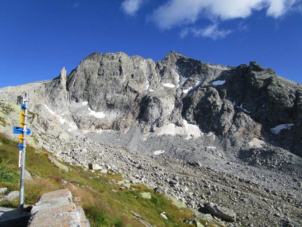 Plán je jasný: obzrieť traverz ktorý vedie poza Cimu di Rosso a omrknúť ľadovec. Najprv ma čaká modrá značka s reťazami ktorú vyrobil chatár Beat a ktorá vedie na Monte Rosso prípadne sa ňou dá pokračovať na Cima di Val Bona alebo cez passo Vazzeda až do Talianska.