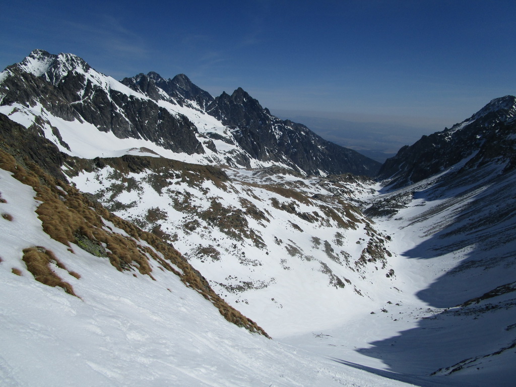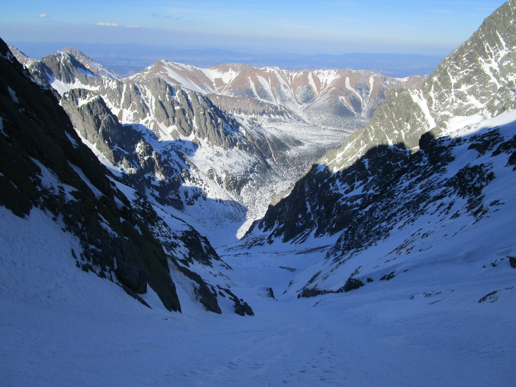 V Bachledovej štrbine sa nezdržujem a začínam hneď zostupovať na mačkách dole ku Térynke. Je tvrdo až ľadovo. Nad lyžovaním ani neuvažujem.