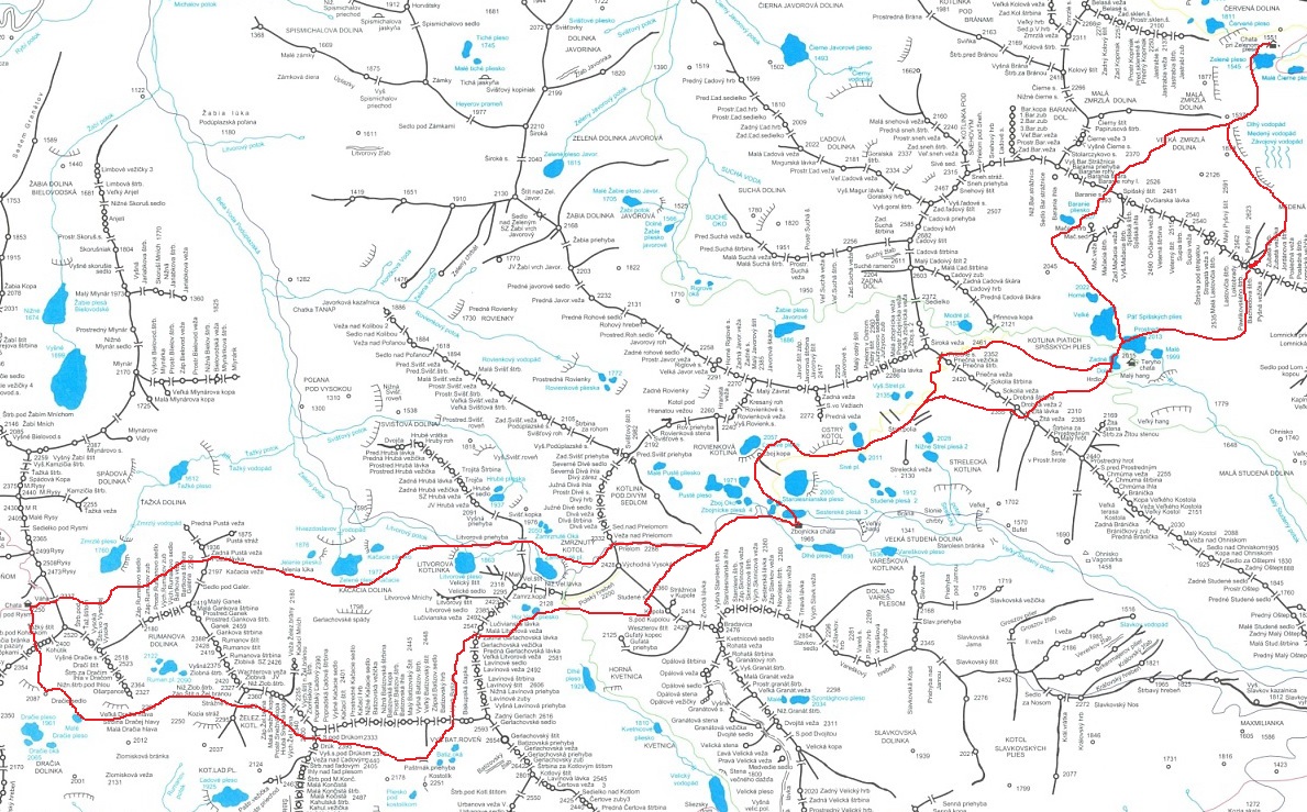 Sobota: Ráno na vrchole Rysov sa plány opät menia a ja sa vraciam cez Váhu, Pustú lávku a klasické sedlá naspäť na Brnču. Uvažujem nad mojím plánom už z minulého roku: kôli nevhodným podmienkam v dolinách spraviť okruh vedúci vo výške neschádzajúc nikde dole do doliny